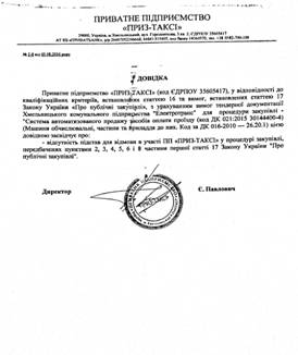 Довідка у довільній формі за підписом керівника та з печаткою про наявність у учасника наступної матеріально-технічної бази: