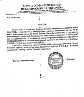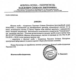 - фізична особа – підприємець Павлович Сніжана Вікторівна (