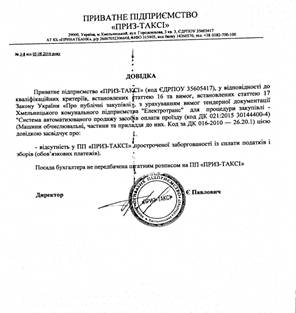 08 серпня 2016 року комунальним підприємством «Хмельницьке комунальне підприємство «Електротранс» (надалі – КП «ХКП «Електротранс», Замовник) було проведено процедуру відкритих торгів щодо закупівлі: «ДК 021:2015 30144400-4 – Система автоматизованого продажу засобів оплати проїзду».
